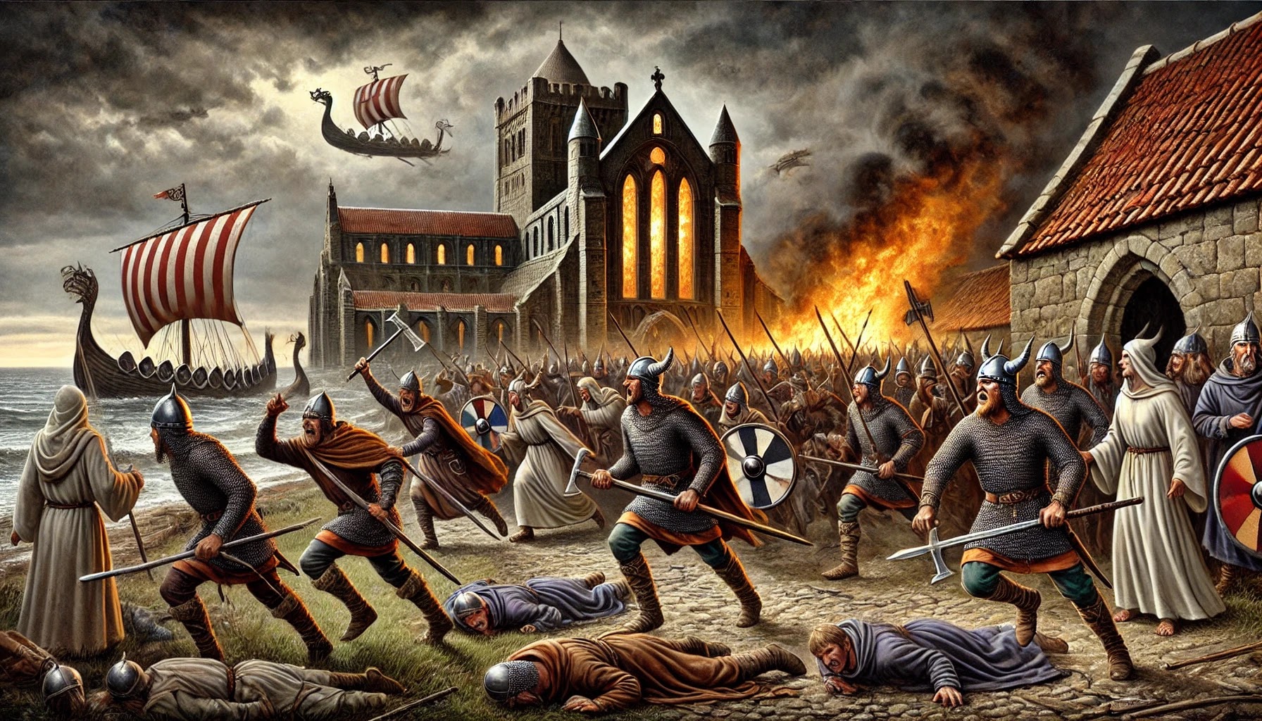Picture this: it’s a quiet morning in June 793 CE on the small island of Lindisfarne, off the northeast coast of England. The monks at the monastery are going about their daily routines—praying, copying manuscripts, tending to their gardens. Suddenly, the peace is shattered by the sight of strange ships with dragon-headed prows approaching the shore.